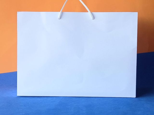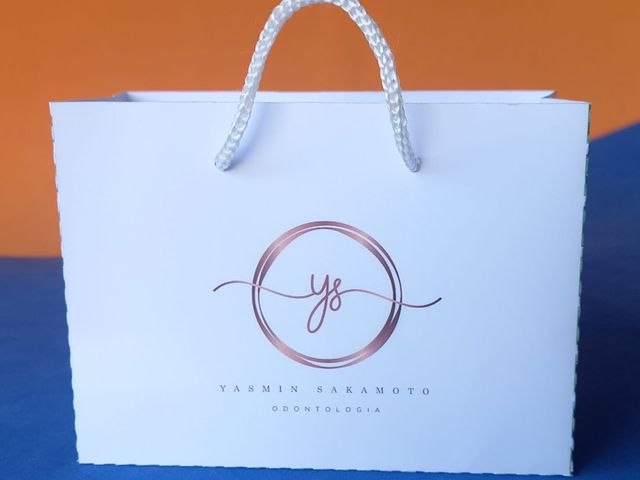 10 unidades Sacola personalizada com papel off set 180 gramas, medida 8 x 12 x3,8 cor branca ou cores claras, com logo impresso de 1 lado, alça poliéster branca ou preta