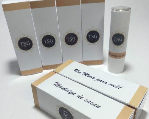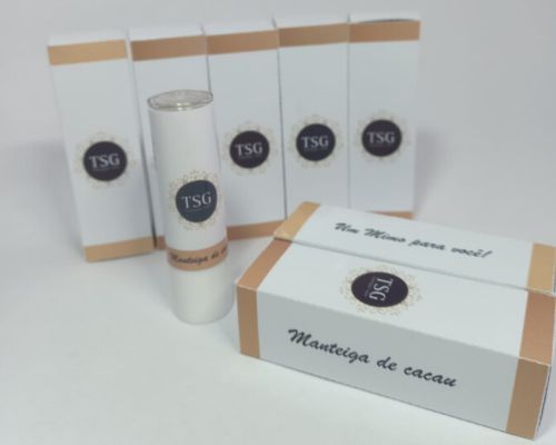 10 unidades de manteiga de cacau com caixa personalizada - embalagem da manteiga de cacau com arte personalizada e adesivada - caixa personalizada material papel off set 180 gramas