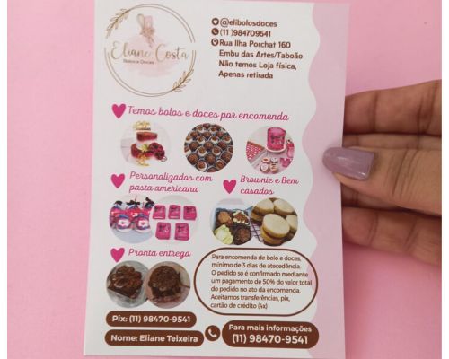 100 unidades Card. personalizado - impressão 1 lado - medida 14x10 - papel fotográfico 180 gramas de acordo com as necessidades com paleta de cores, logomarca, contatos e texto padrão ou texto enviado pelo cliente. Ideal para envio de carta de agradecimento ao cliente, frase motivacionais, dicas, promoções, etc