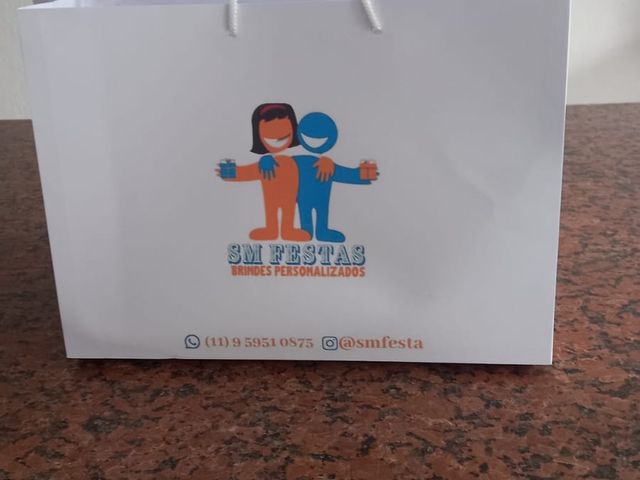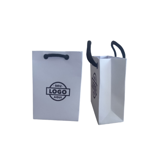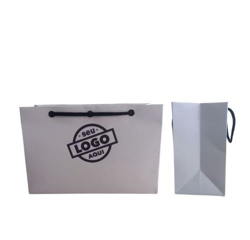 10 unidades Sacola personalizada com papel offset 180 gramas, cor branca, com logo impresso em 1 lado , alça poliéster branca, Colorida ou lateral diferenciada - consultar valor