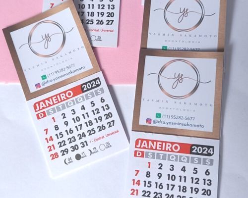 50 unidades calendário imã 5x5 com canhoto 2024