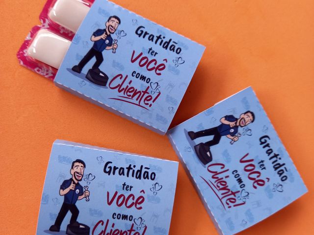 50 chicletes tipo pastilhas 4 unidades cada - capa personalizada papel fotográfico 180 gramas