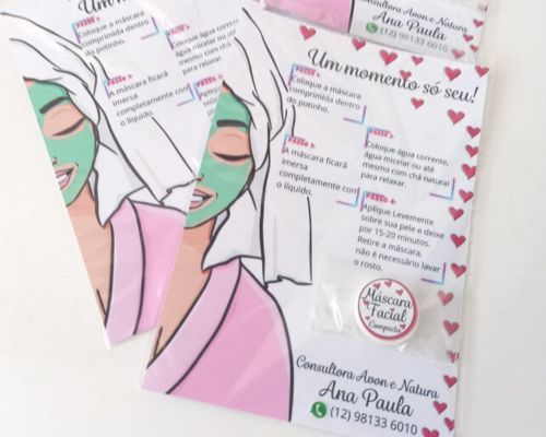 20 unidades de card personalizado medida 14x10 com passo-a-passo do uso da marcara facial compact contatos e logo+1 mascara facial compacta anexo